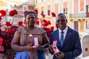 Cette année deux collègues du Burkina Faso, Mme Madeleine OUEDRAOGO, comptable pour les projets menés en collaboration avec la Croix-Rouge du Burkina Faso, depuis 2011 et M. Jean-Noel YAMEOGO, Chef de Projet « Eau, Hygiène, Assainissement et Diversification alimentaire », depuis 2011 ont reçu de S.A.S. le Prince Albert II la médaille de la Reconnaissance de la Croix-Rouge monégasque.