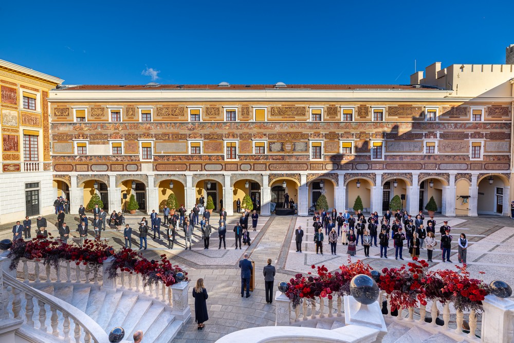 Monaco 18/11/2025 : À l’occasion de la Fête Nationale monégasque 2025, S.A.S. le Prince Albert II a remis les Médailles d’Honneur aux Bénévoles, les Médailles du Mérite National du Sang et de la Reconnaissance de la Croix Rouge Monégasque, dans la Cour d’Honneur du Palais Princier.